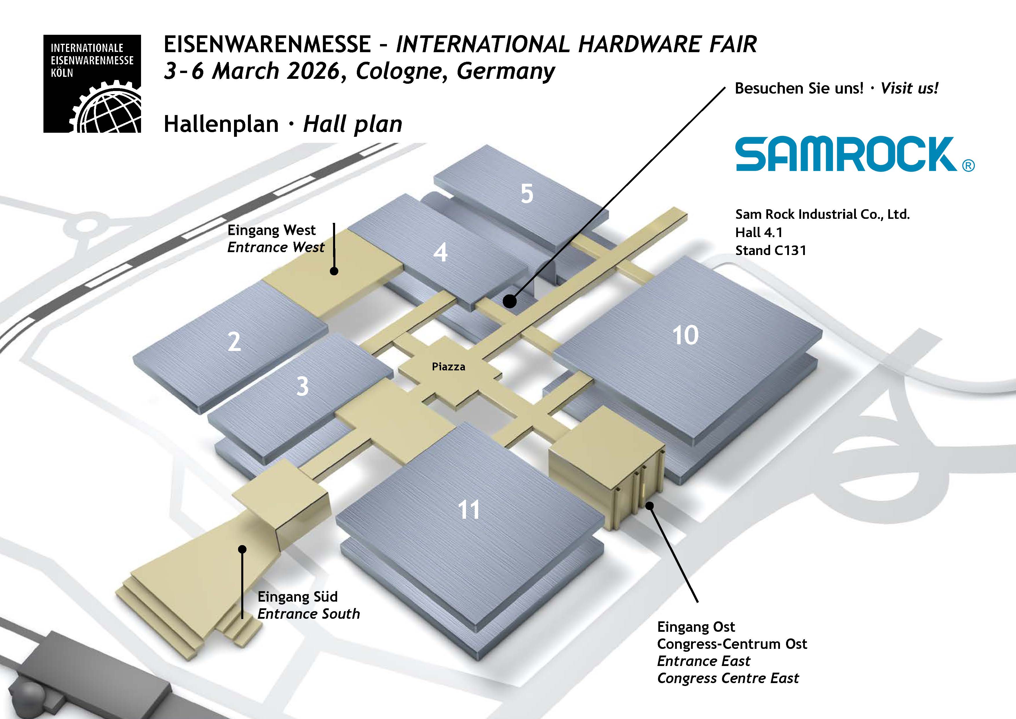 Sam Rock Industrial Co., Ltd. is pleased to announce that the company will be exhibiting at the 2026 International Hardware Fair, held in Cologne, Germany, from March 3 to March 6, 2026. The International Hardware Fair is one of the most important global trade events in the hardware industry.